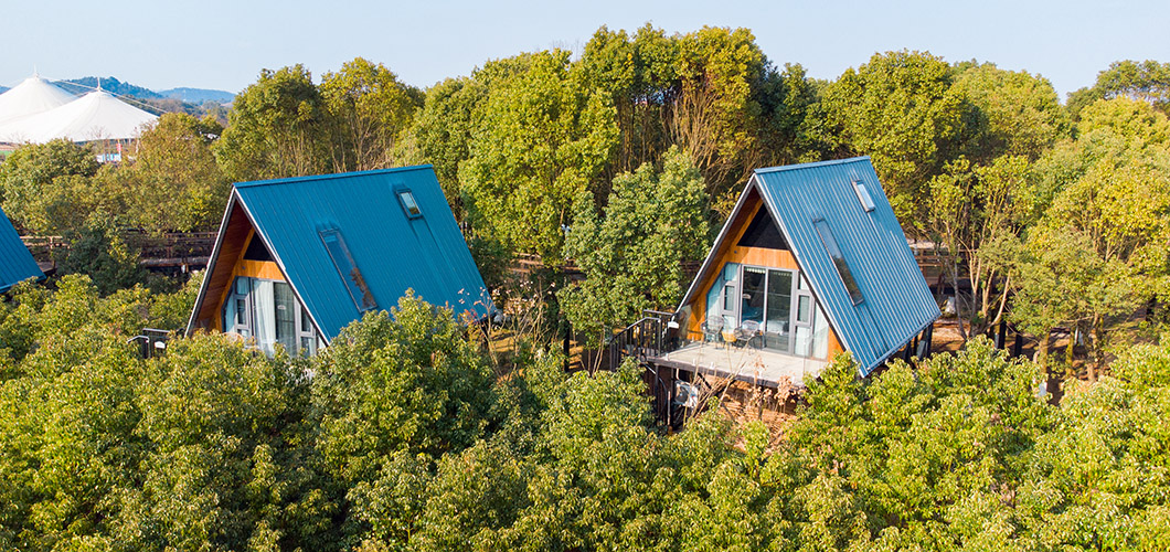 ¥180起¥120起酒店特色:“途语”三角树屋,踏上凌空木栈道便置身于茂密树林间。纵横交错的栈道在青葱林木间无限延伸,仿佛进入了林