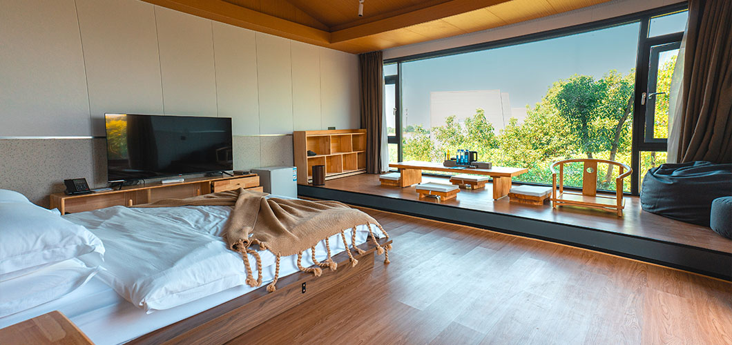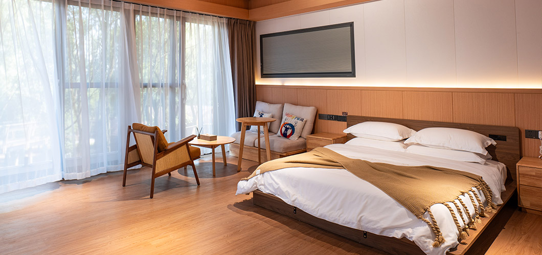 ¥180起¥120起酒店特色:鹿宿树屋度假酒店-叁宿是一栋依树而建,傍林而居的三层别墅。每间房都有很大的观景落地窗,让人更亲近自然
